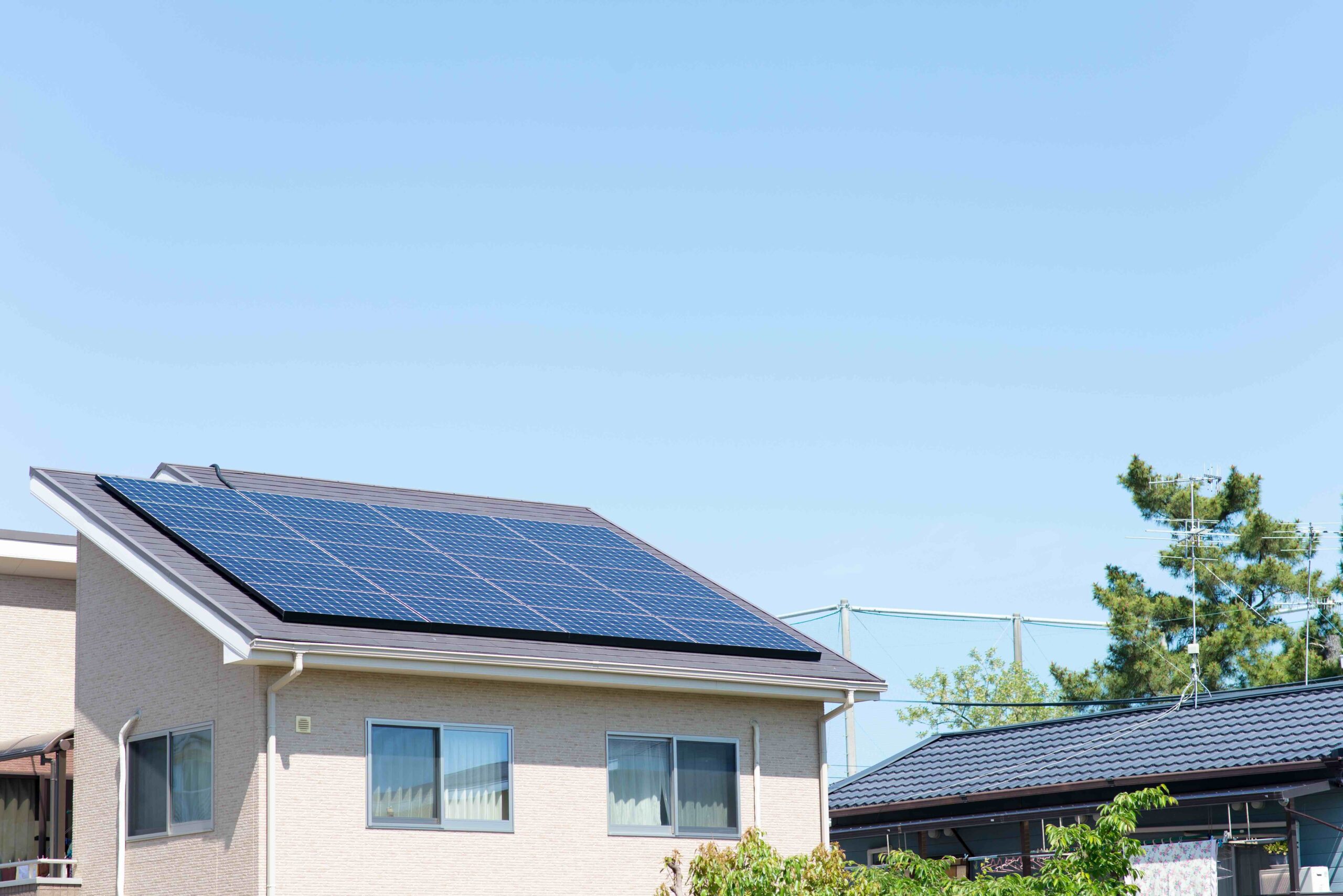 ⼀般のご家庭や産業⽤の太陽光発電を加え、学校施設や⼤型商業施設への⾃家消費型太陽光発電システムの施⼯も⾏っています。