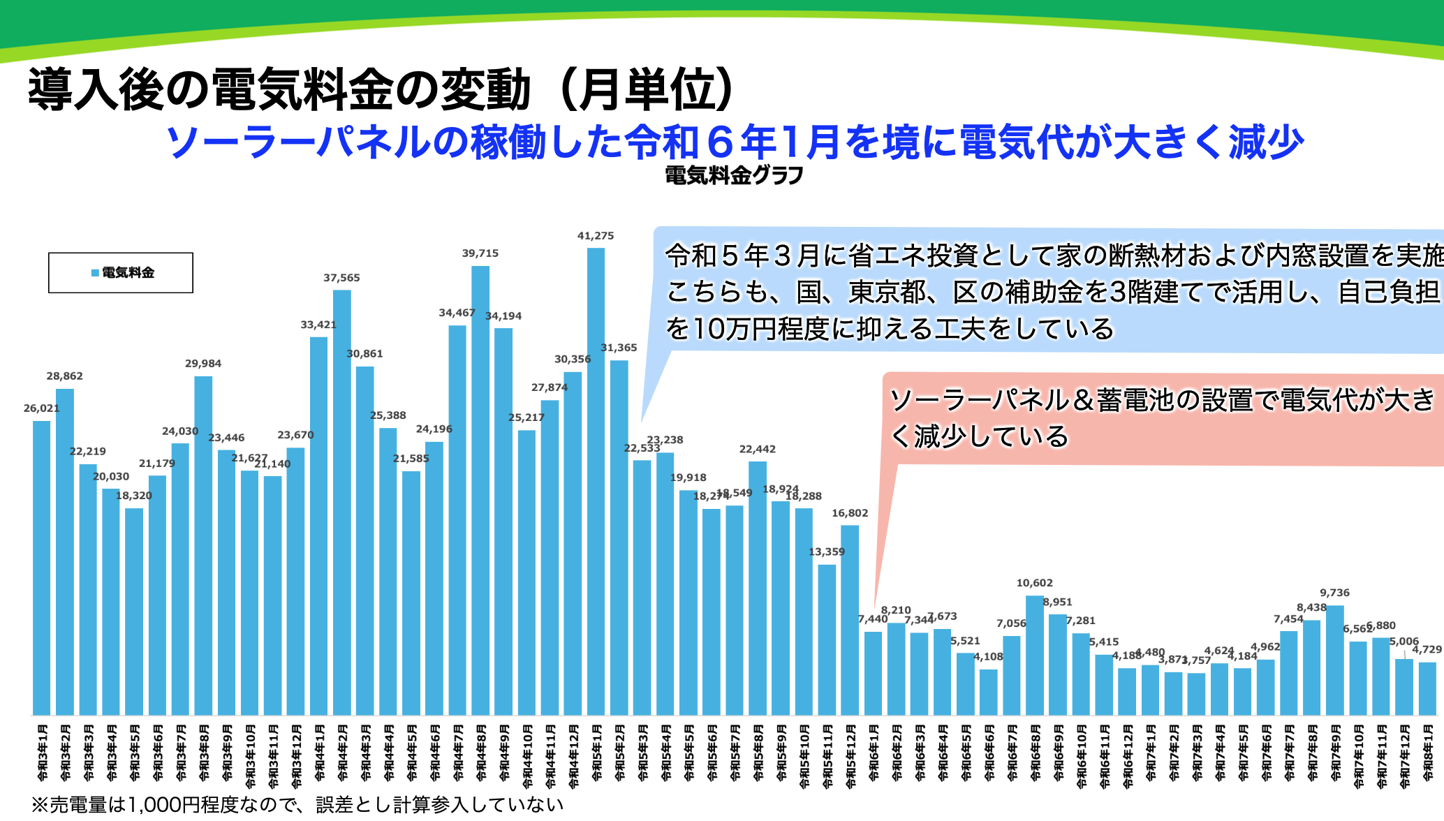 ソーラーパネルと蓄電池の導入による電気料金の遷移に関して
